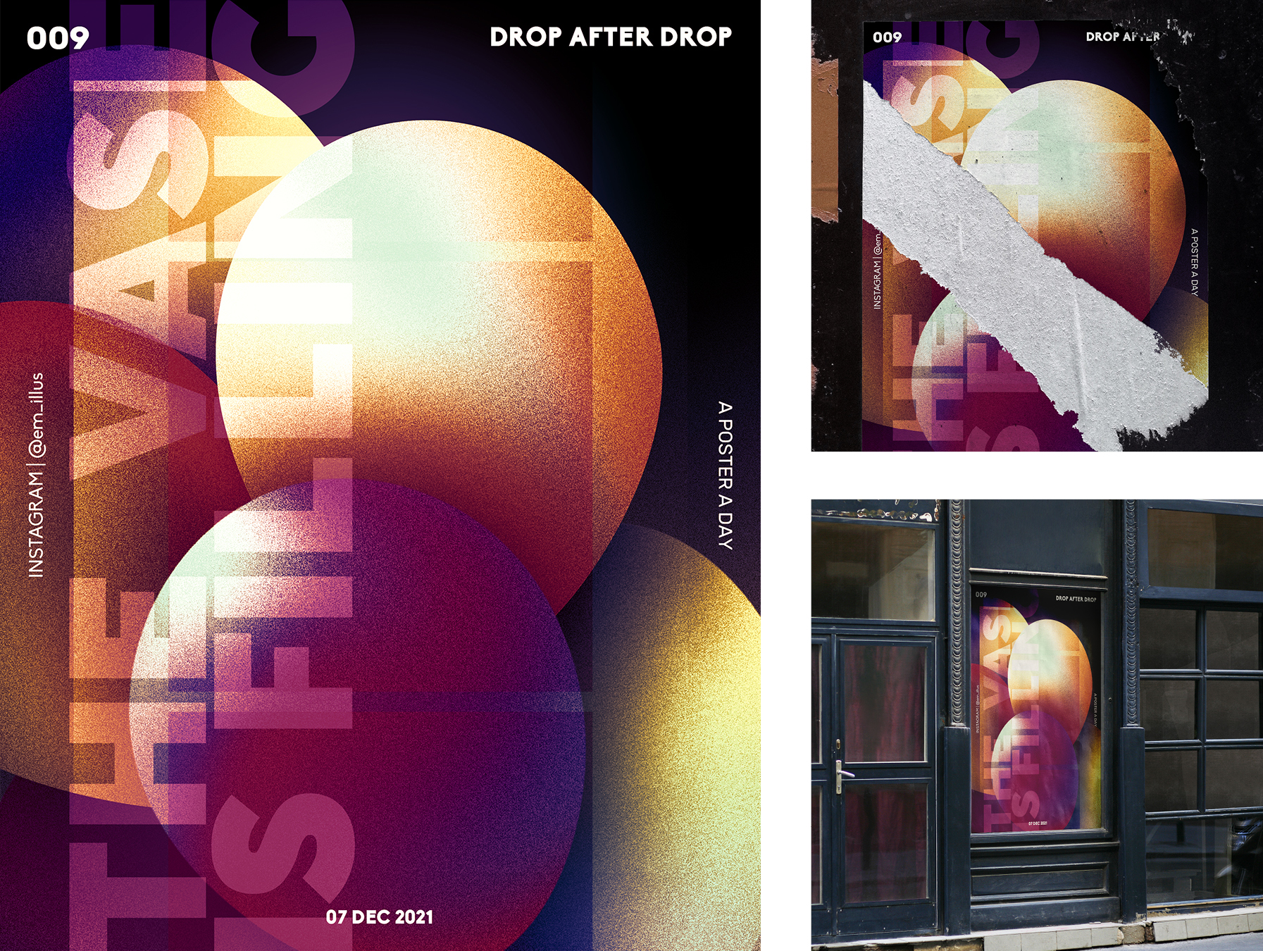 Ces affiches sont le fruit d’un défi que je me suis lancé : créer une nouvelle affiche chaque jour, pendant 19 jours. Ce projet était une l’occasion d’explorer de nouvelles techniques et laisser libre cours à l’instinct et à la créativité. Chaque pièce est numérotée, révélant l’évolution du style en l’espace de seulement 19 jours. C’était une expérience où l’improvisation et l’énergie créative étaient à l’honneur, capturant l’essence de l’expérimentation visuelle au jour le jour.
