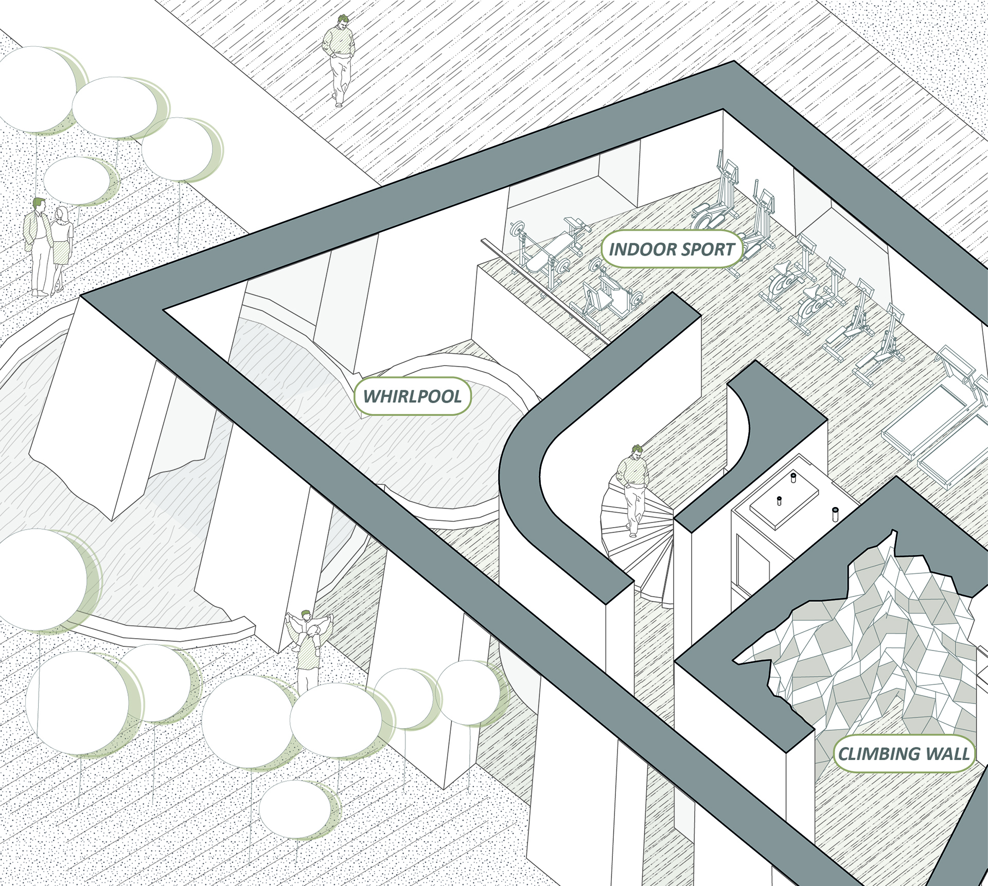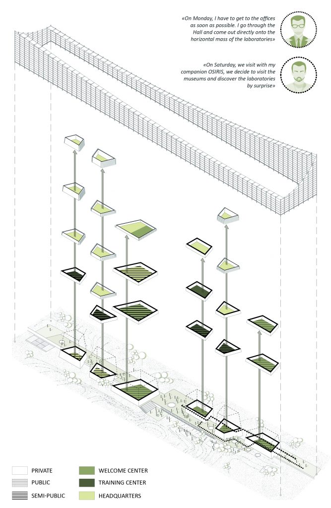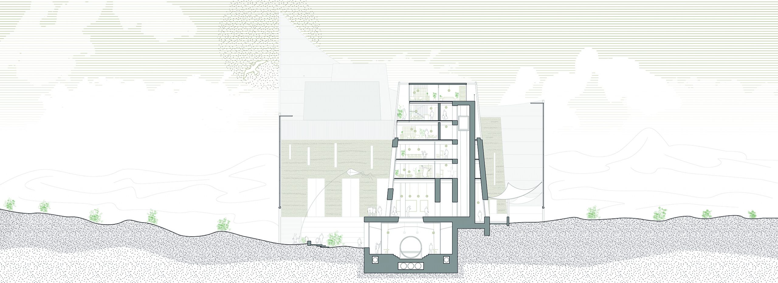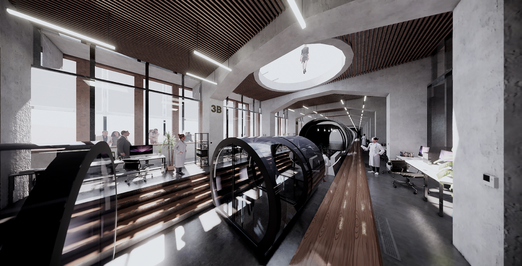 Le concept de refuge, dernier pilier de notre vision, se traduit par une architecture qui allie sobriété des formes et fonctionnalité, envisageant un campus atemporel, véritable sanctuaire de la connaissance, autosuffisant. Ce lieu se veut l’avant-garde d’un espace où convergent possibilités infinies : un creuset où se rencontrent et se mêlent les individus, partageant idées et ressources dans une démarche d’autosuffisance.