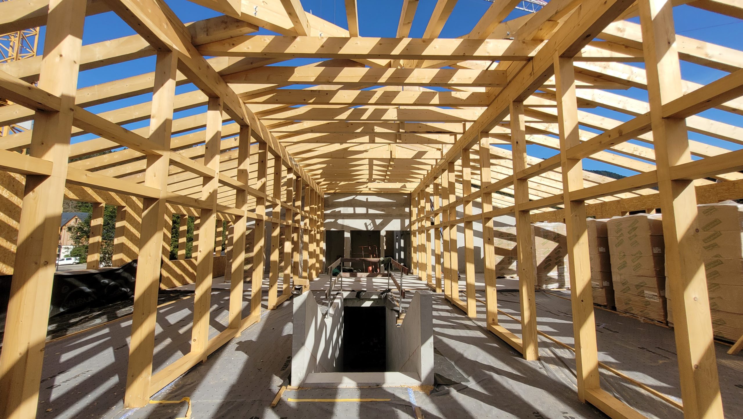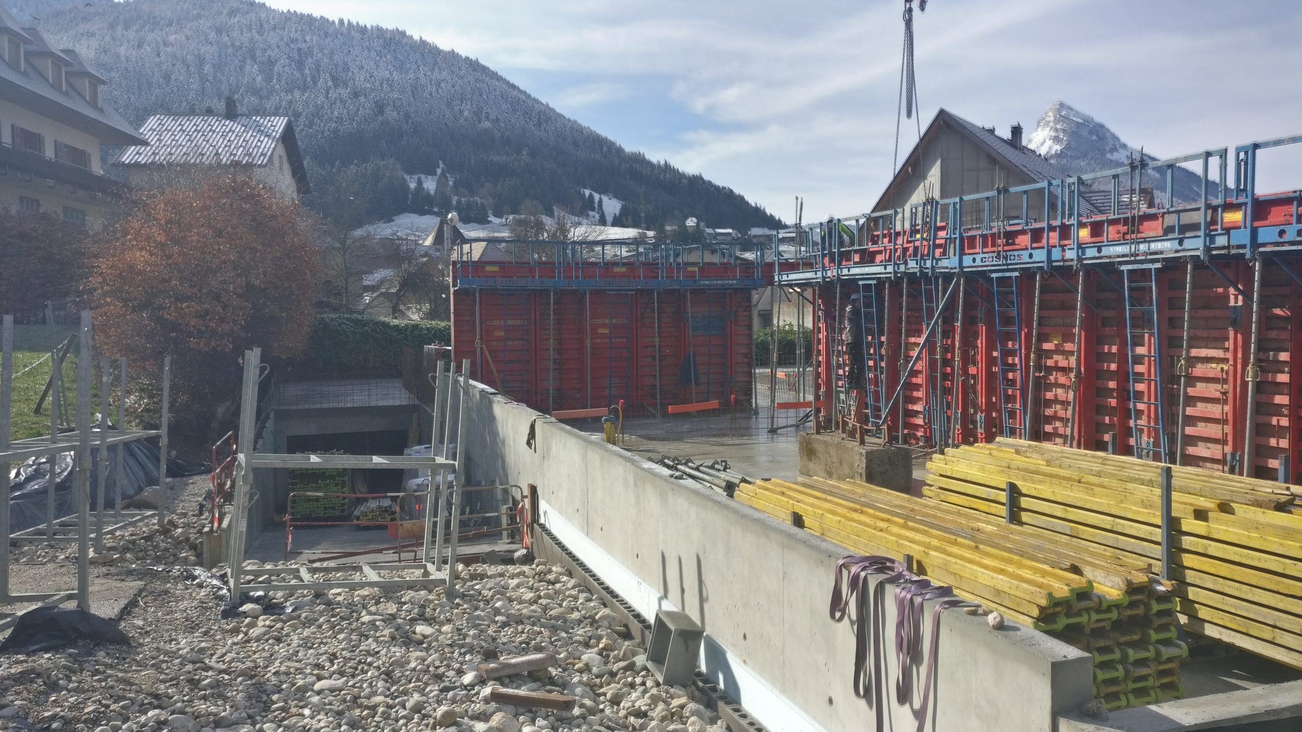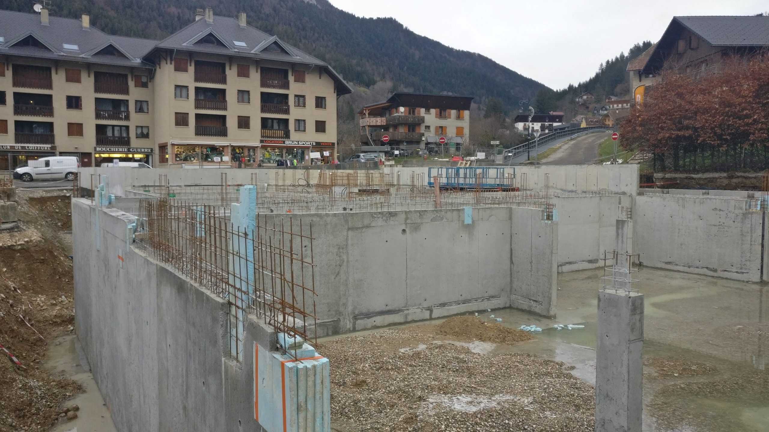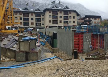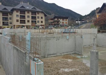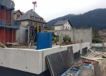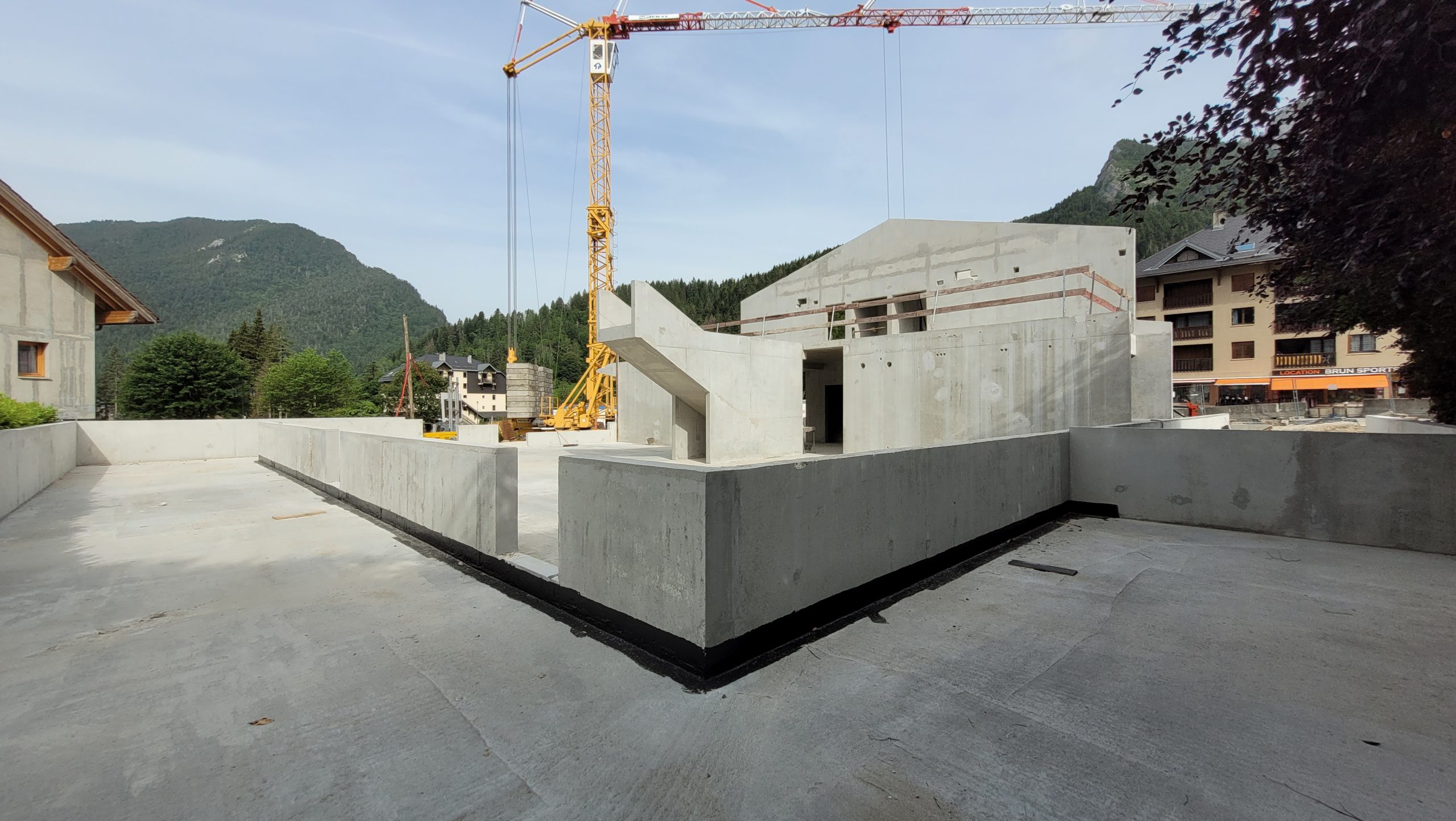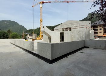 Le projet se construit sur une stratification horizontale, conforme à la topographie du Plan de Ville et à son réaménagement. Il s’inscrit comme une respiration singulière dans le cirque des massifs qui l’entoure. La première strate est minérale, socle de pierre qui arrime le bâtiment à son terrain puis s’ouvre pour accueillir l’emmarchement qui le lie à la topographie et au parvis public.