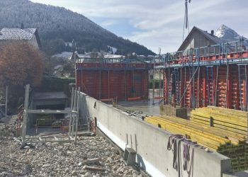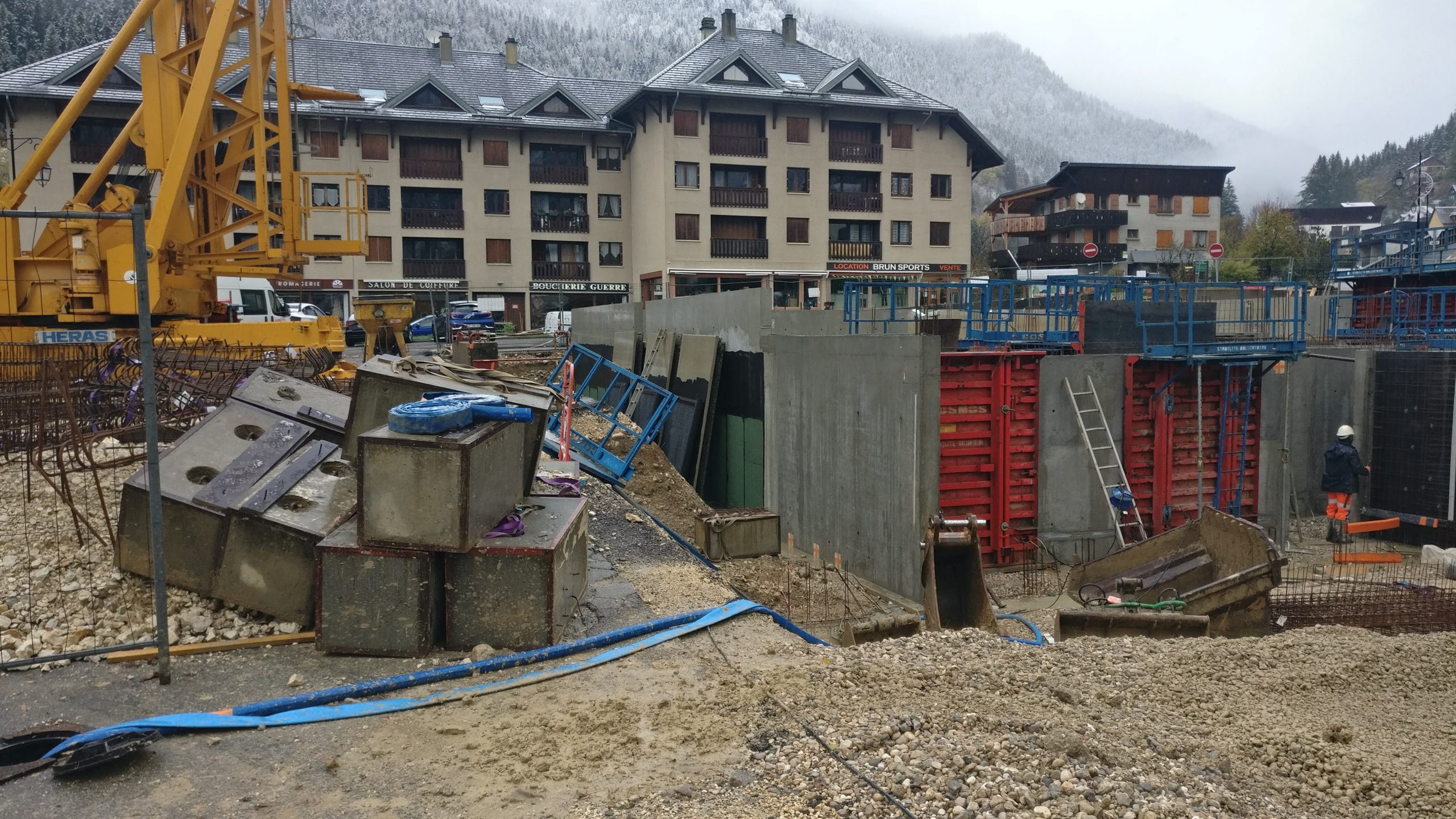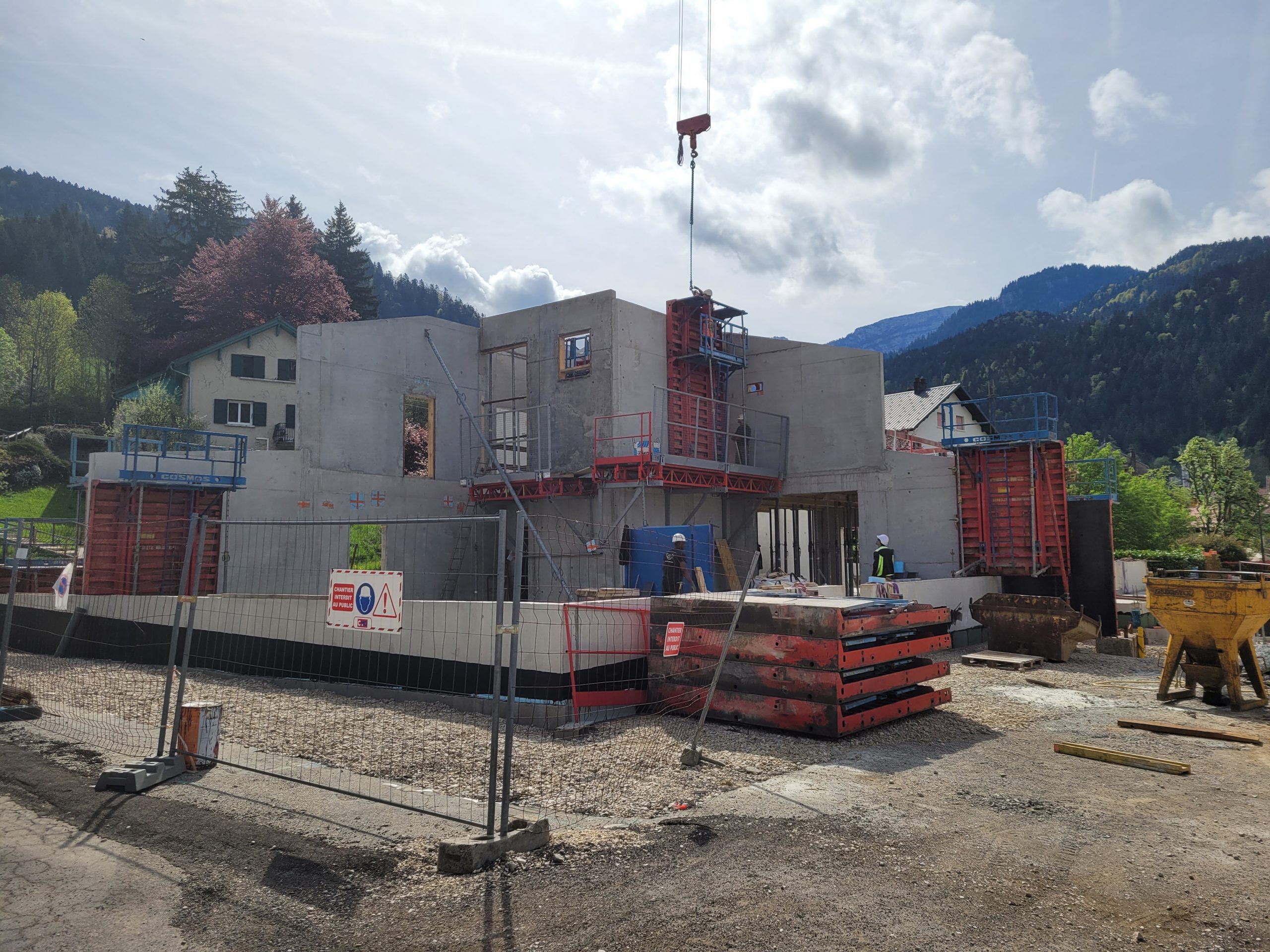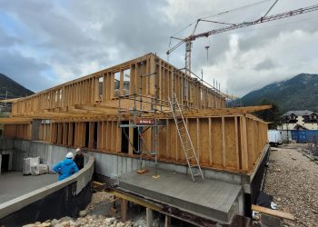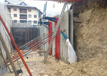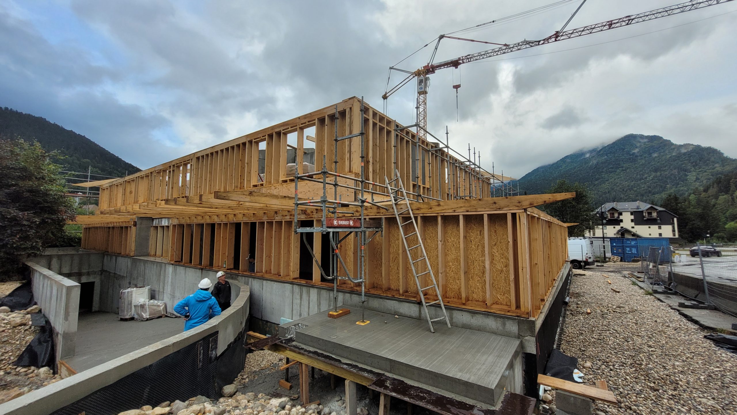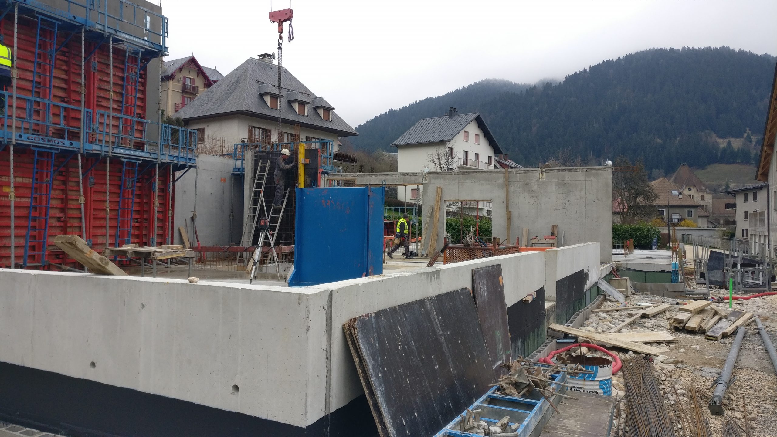 Le projet se construit sur une stratification horizontale, conforme à la topographie du Plan de Ville et à son réaménagement. Il s’inscrit comme une respiration singulière dans le cirque des massifs qui l’entoure. La première strate est minérale, socle de pierre qui arrime le bâtiment à son terrain puis s’ouvre pour accueillir l’emmarchement qui le lie à la topographie et au parvis public.