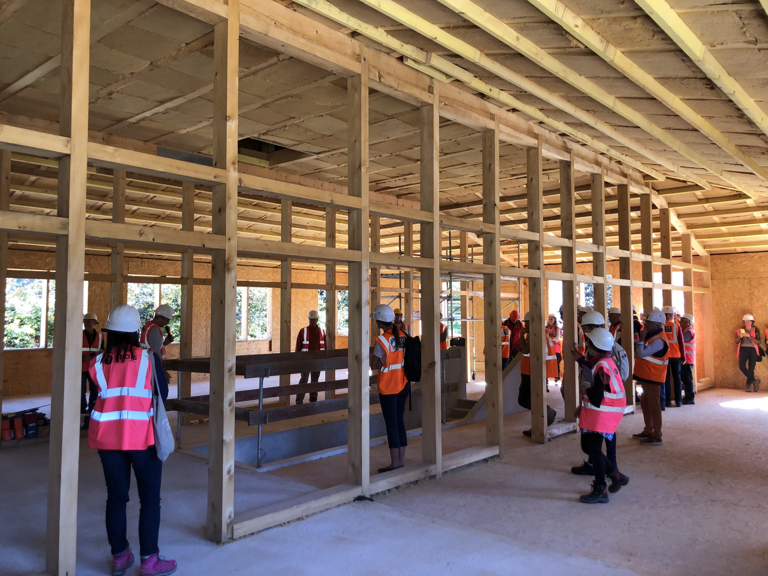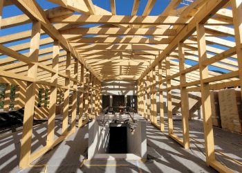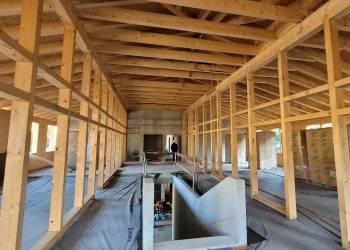 La seconde est un plan de verre, mur rideau d’aiguilles bois qui décrit l’ensemble des volumes du rez de chaussée et les ouvre à la lumière naturelle. Sur cette orientation sud-ouest, face au parvis, la transparence désigne la vocation publique des espaces, Office du Tourisme et salle de réunions partagées.