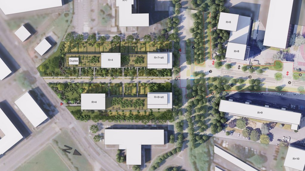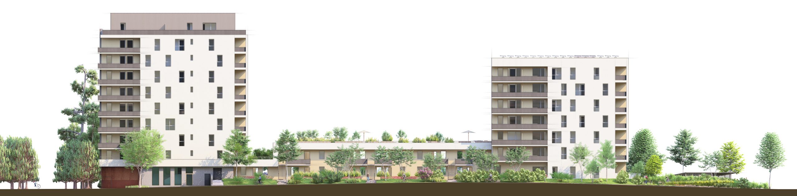 Le projet prévoit la construction de 2 bâtiments distincts, culminants pour l’un en R+7 + attique et l’autre en R+8 + attique.