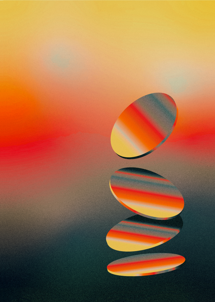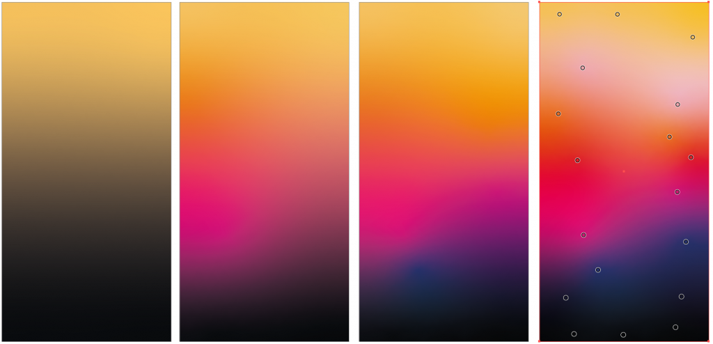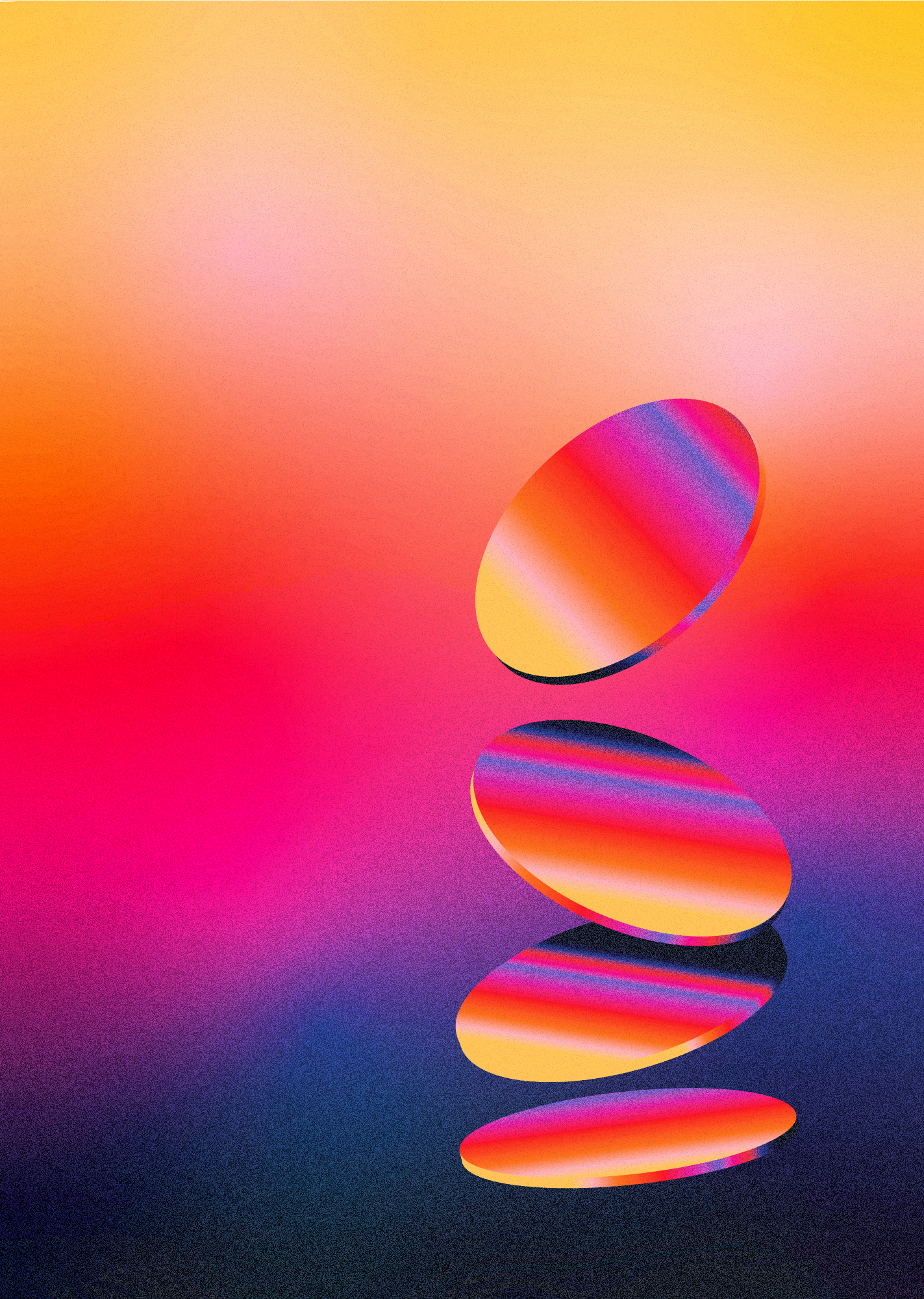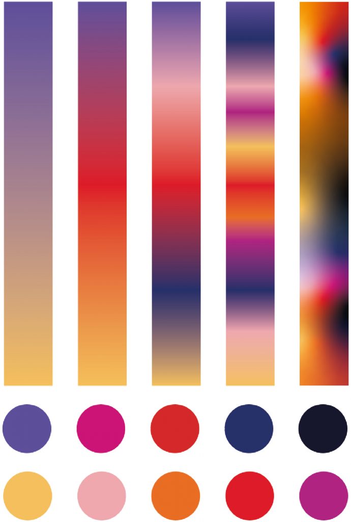 Les dégradés sont élaborés de manière libre, visant à perturber leur uniformité traditionnelle, et leur insufflent une vitalité, une chaleur ainsi que des nuances évoquant les esthétiques du synthwave, du baugasm, et du lo-fi.Toute l’essence de cette recherche était de réussir à marier des couleurs parfois non-complémentaires dans une écriture uniforme afin de créer cette vibrance.