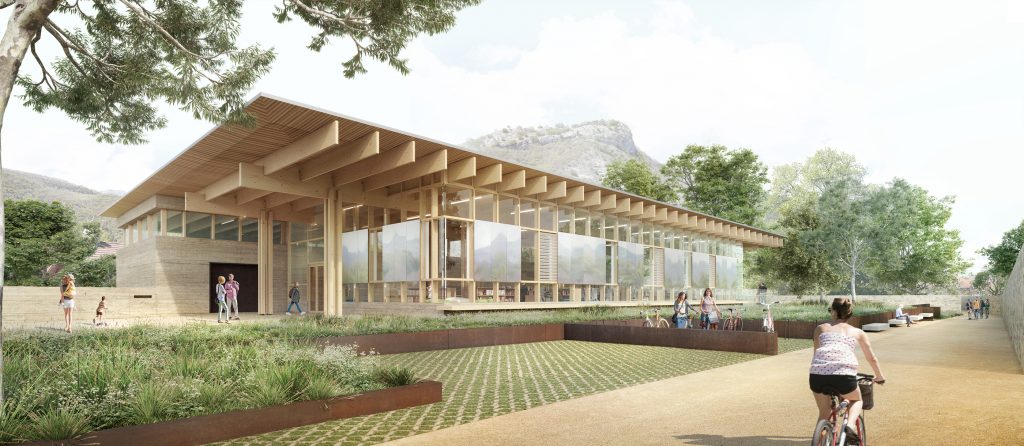 Ce projet pour la médiathèque de Vif dispose deux volumes parallèles, orientés sur la direction nord-sud, dont les matérialités signent l’engagement environnemental.